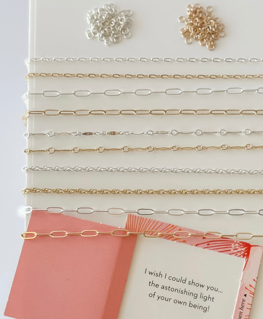 Permanent Jewelry Chain Starter Pack – 30 Feet of 14kt Gold-Filled & .925 Sterling Silver + 400 Jump Rings