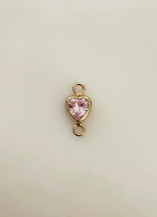 AAA/3A Pink CZ 14k Gold Filled Heart Bezel Connector (Set of 2) Permanent Jewelry Vertical or Horizontal