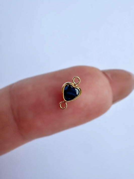 AAA/3A Black CZ 14k Gold Filled Heart Bezel Connector (Set of 2) Permanent Jewelry Vertical or Horizontal