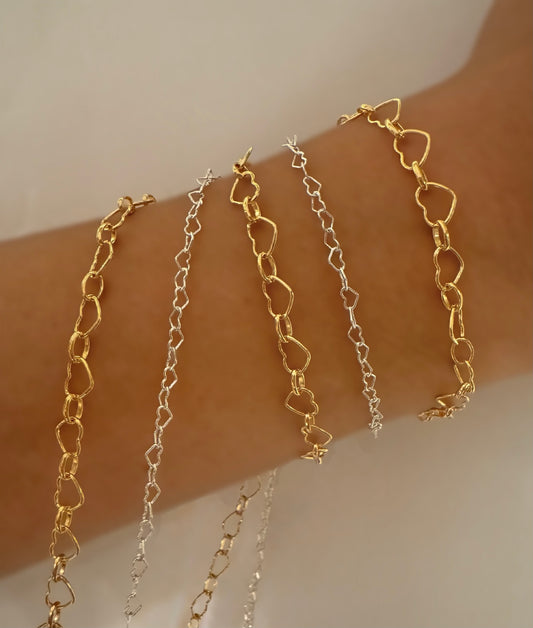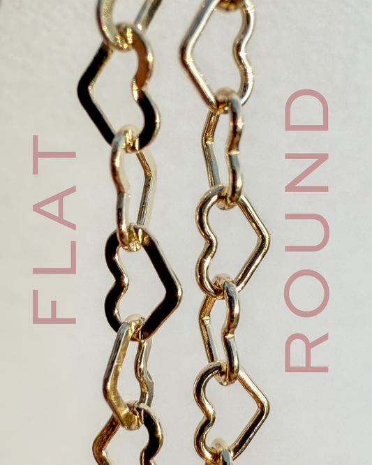 Flat Heart Wholesale Permanent Jewelry Chain - 14k Gold Filled or .925 Sterling Silver
