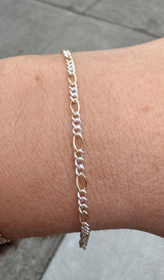 Original Design (Big Gold Filled Link)- 14k Gold Filled & .925 Sterling Silver Mixed Metal Figaro Permanent Jewelry Chain by the foot