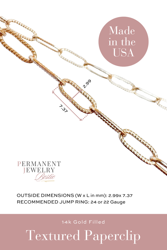 Textured Paperclip Permanent Jewelry Chain by the foot