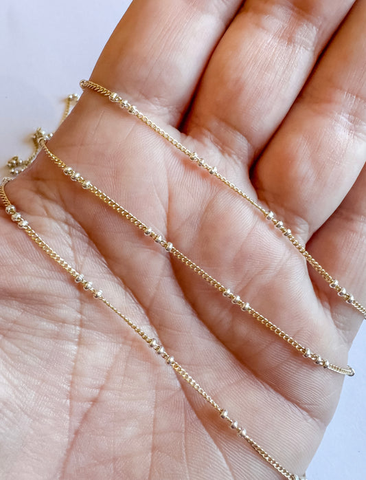 14k Gold Filled & .925 Sterling Silver Mixed Metal Tri Bead Satellite Curb Permanent Jewelry Chain