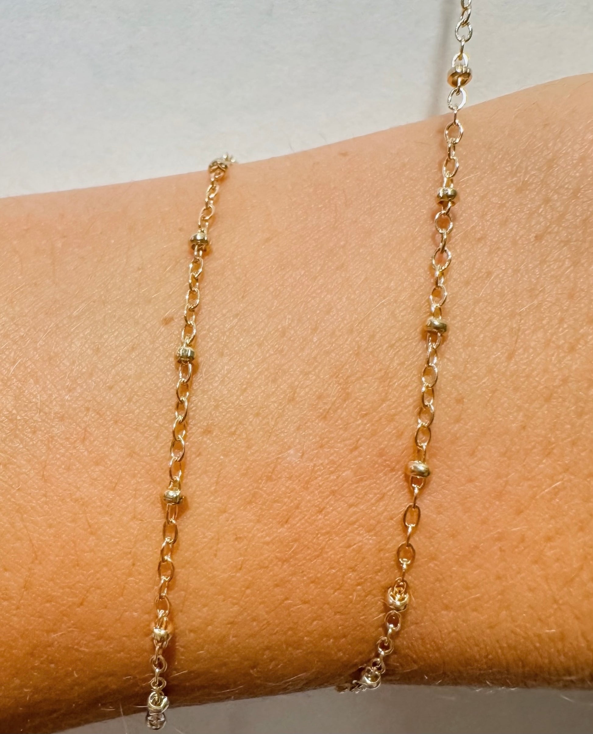Your clients love sparkle and this chain delivers it in the most wearable way. Our beginner-friendly 14k Gold-Filled or . 925 Sterling Silver Satellite Chain features petite oval links with perfectly spaced beads for that delicate-yet-detailed look clients can’t resist.