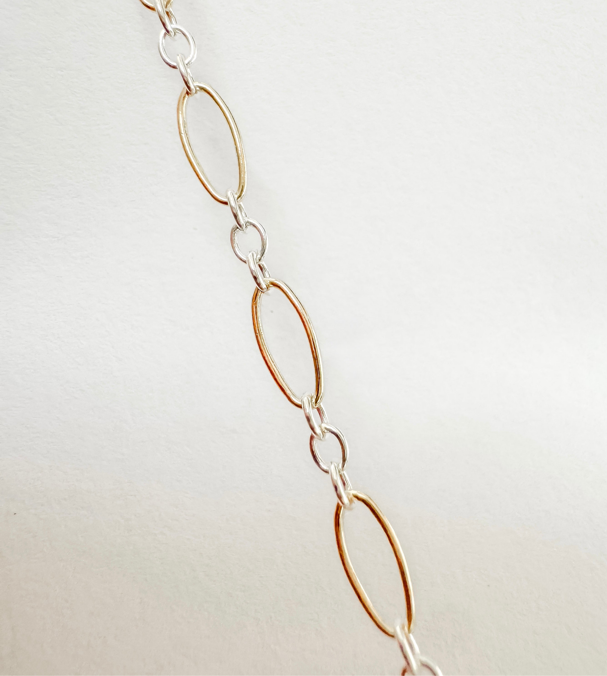 Mixed Metal Marquise 14k Gold-Filled & .925 Sterling Silver Link Permanent Jewelry Chain