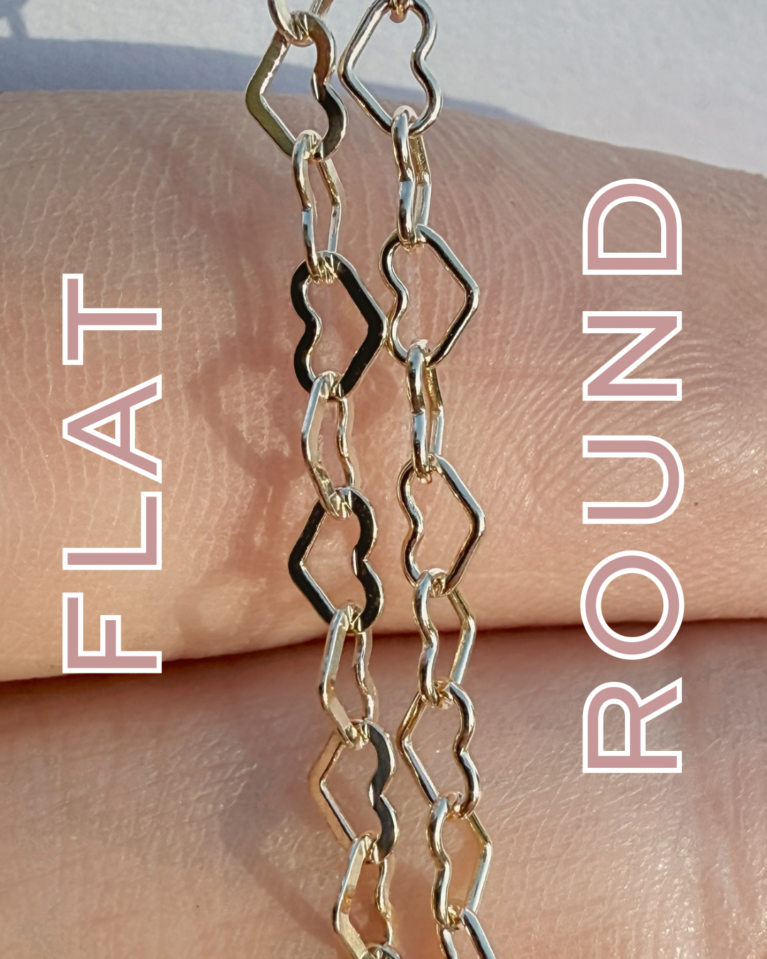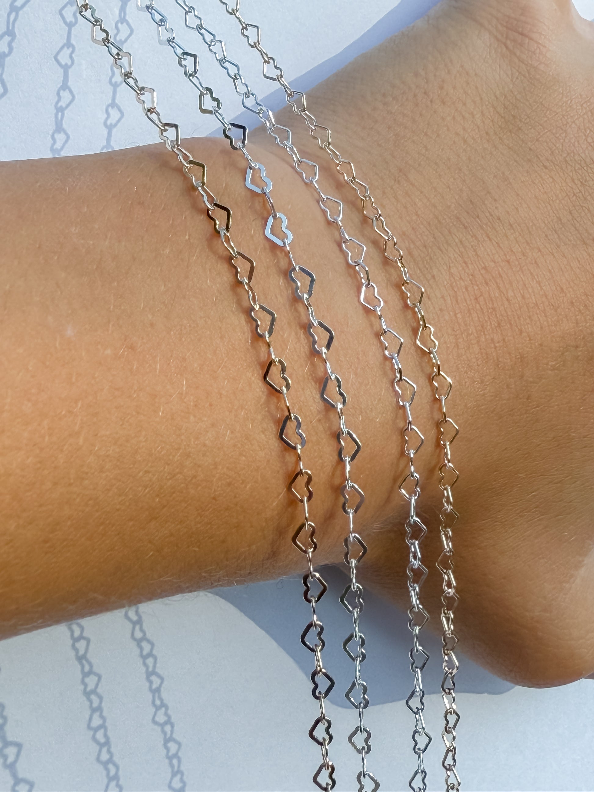 Flat Heart Wholesale Permanent Jewelry Chain - 14k Gold Filled or .925 Sterling Silver