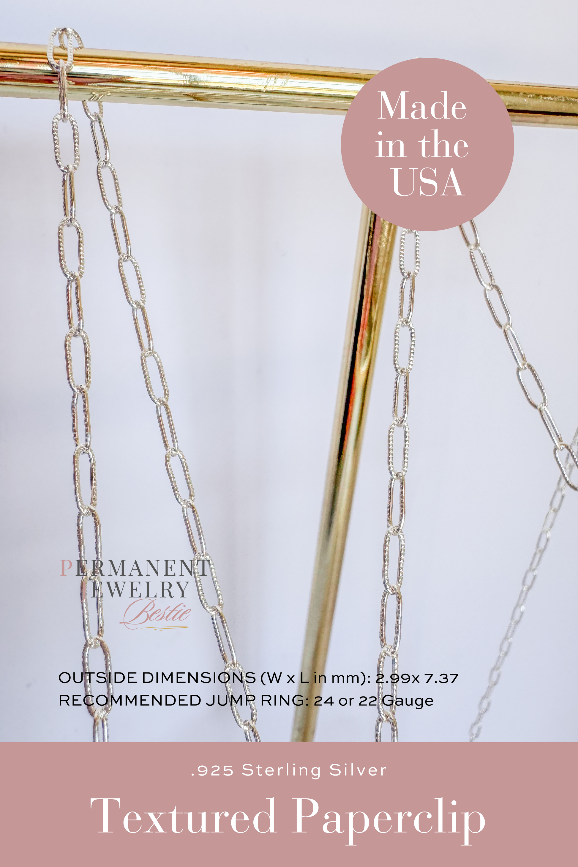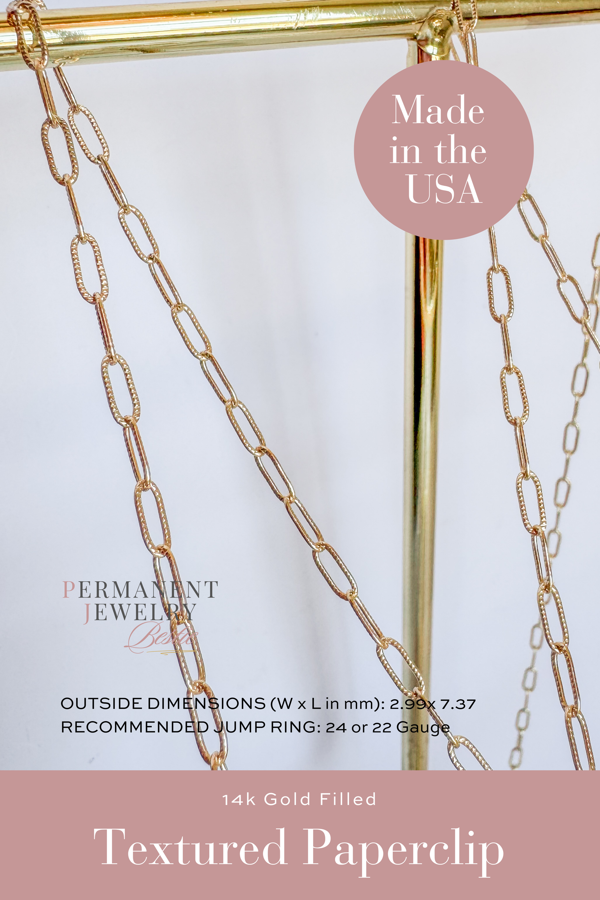 Textured Paperclip Permanent Jewelry Chain by the foot